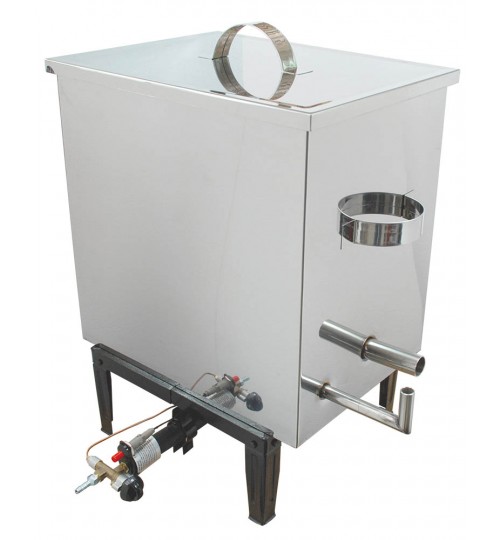 Material: Edelstahl, Techn.Daten: Gesamthöhe: 840 mm Behältergröße: Länge 515 mm, Breite 360 mm, Höhe 495 mm Korbgröße: Länge 445 mm, Breite 290 mm, Höhe 330 mm Ablaufhahn: 1“ Gratis: Hockerbrenner 8KW Propan - Butan