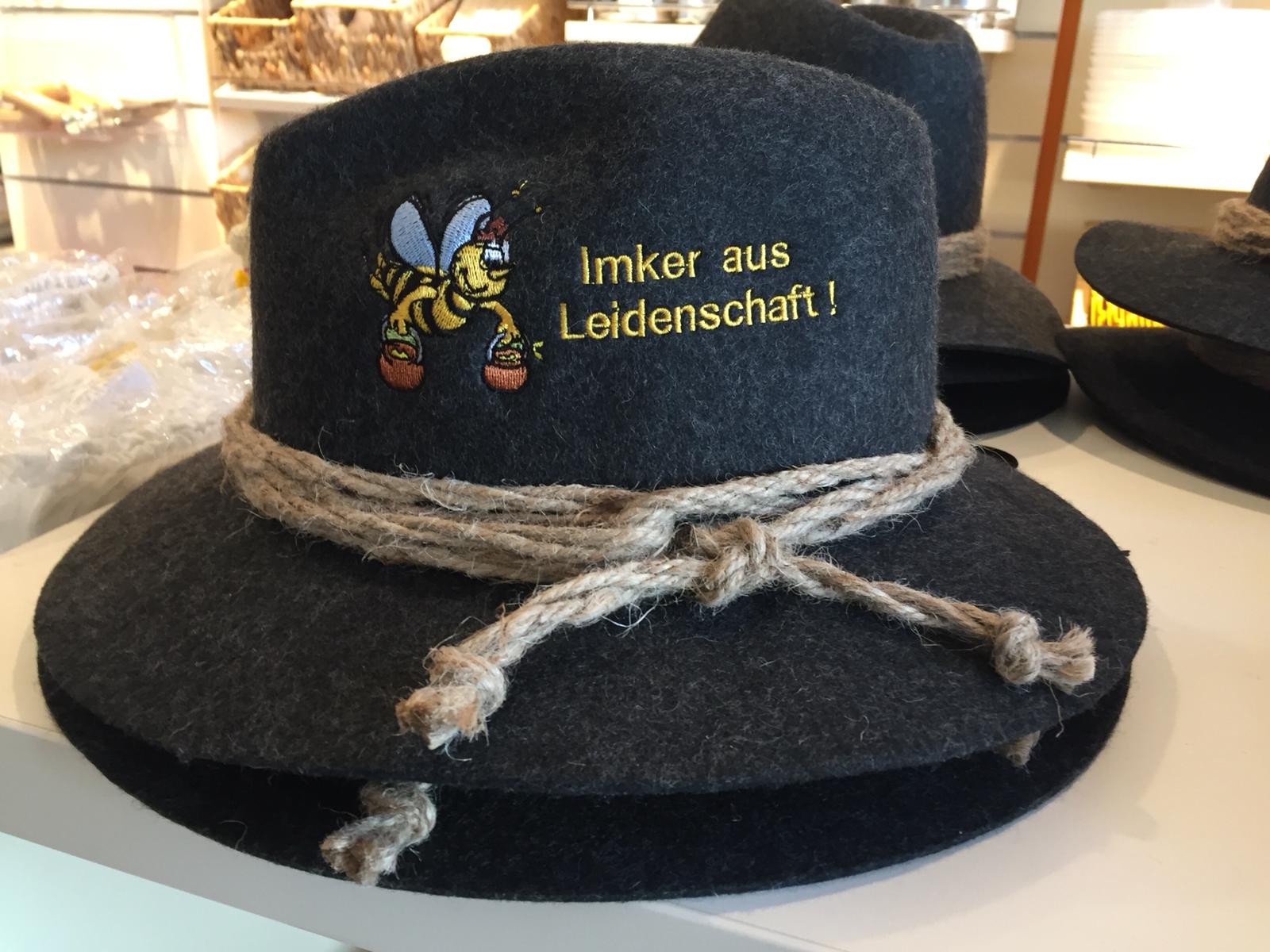 Filzhut mit Bienenstick und Aufschrift: " Imker aus Leidenschaft "