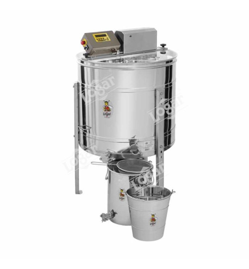 Die Unterstell-Siebkanne ist vor allem für das Sieben während des Honigschleuderns bestimmt. Es sind zwei Quetschhähne aus Edelstahl angeschweißt, die den Honig schön abschneiden. Der obere Quetschhahn ist zum Auslaufen des gesiebten Honigs in niedrigere Behälter bestimmt. Der untere Quetschhahn dient dem Ablassen des Honigs. In der Unterstell-Siebkanne befindet sich ein feines Sieb mit einem Durchmesser von 30,5 cm und einer Höhe von 34 cm. Das Sieb ist aus einem Gitterstoff aus Edelstahl und gewährleistet einen hohen Honigdurchfluss.